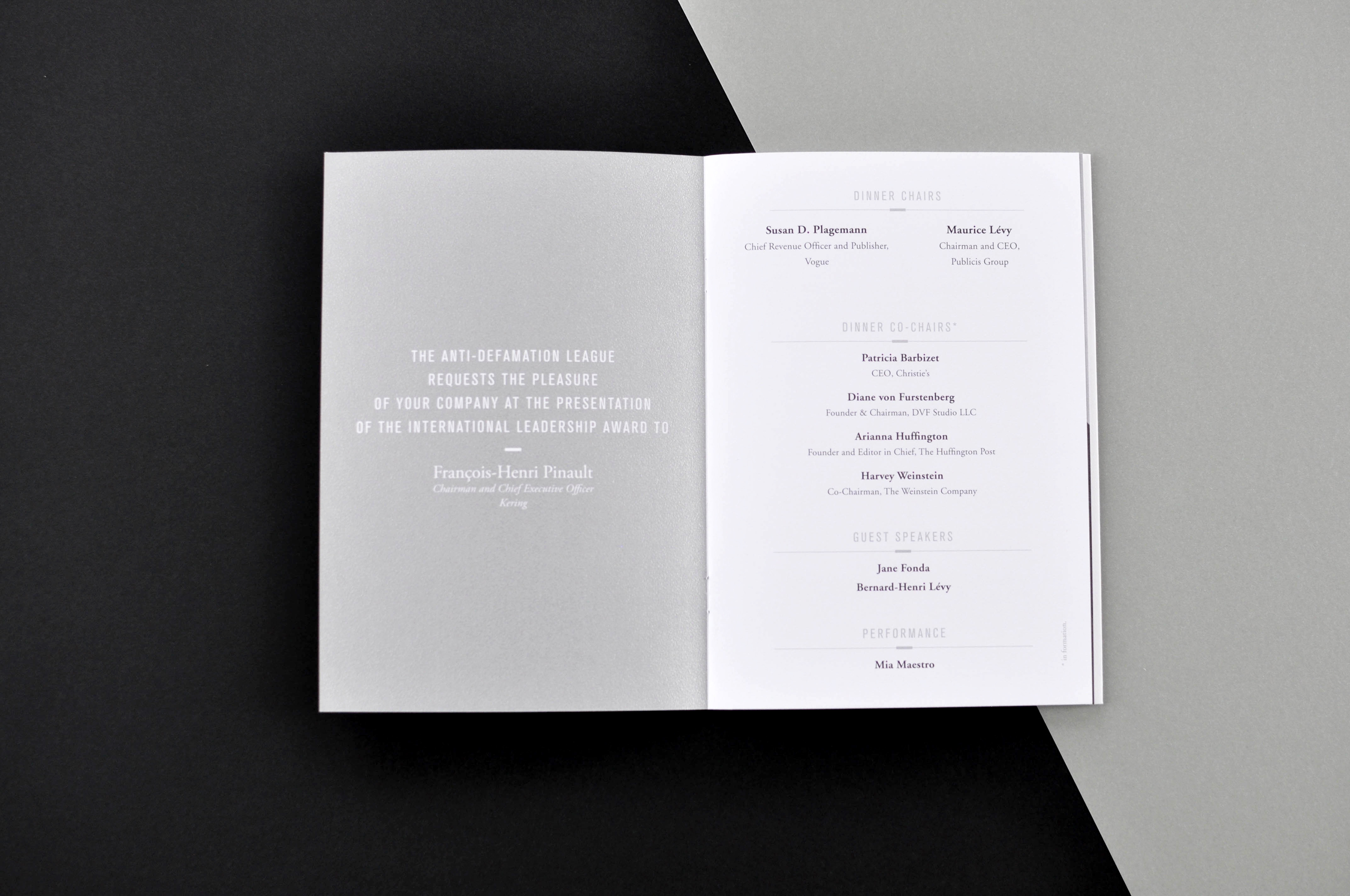 Art Direction, Graphic Design, Print Design A Tribute to Jean-François Pinault at the Waldorf Astoria, New York.